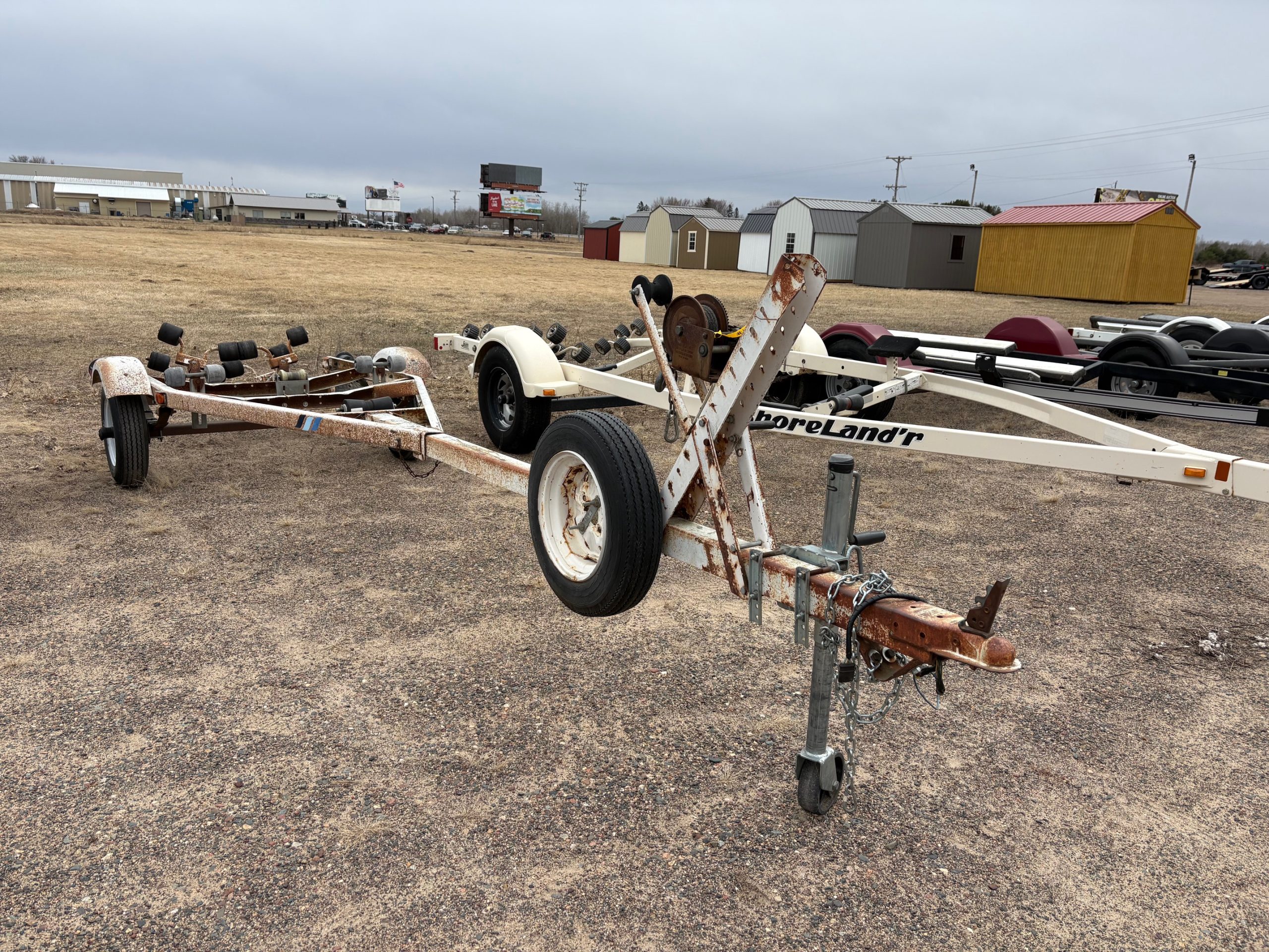 Features: Fit’s 14′-16′ boats, 1,200lb carrying capacity, 2″ coupler, mounted spare, 48″ between fenders, overall width 64″, 5.30-12 tires, new tires, lifetime license