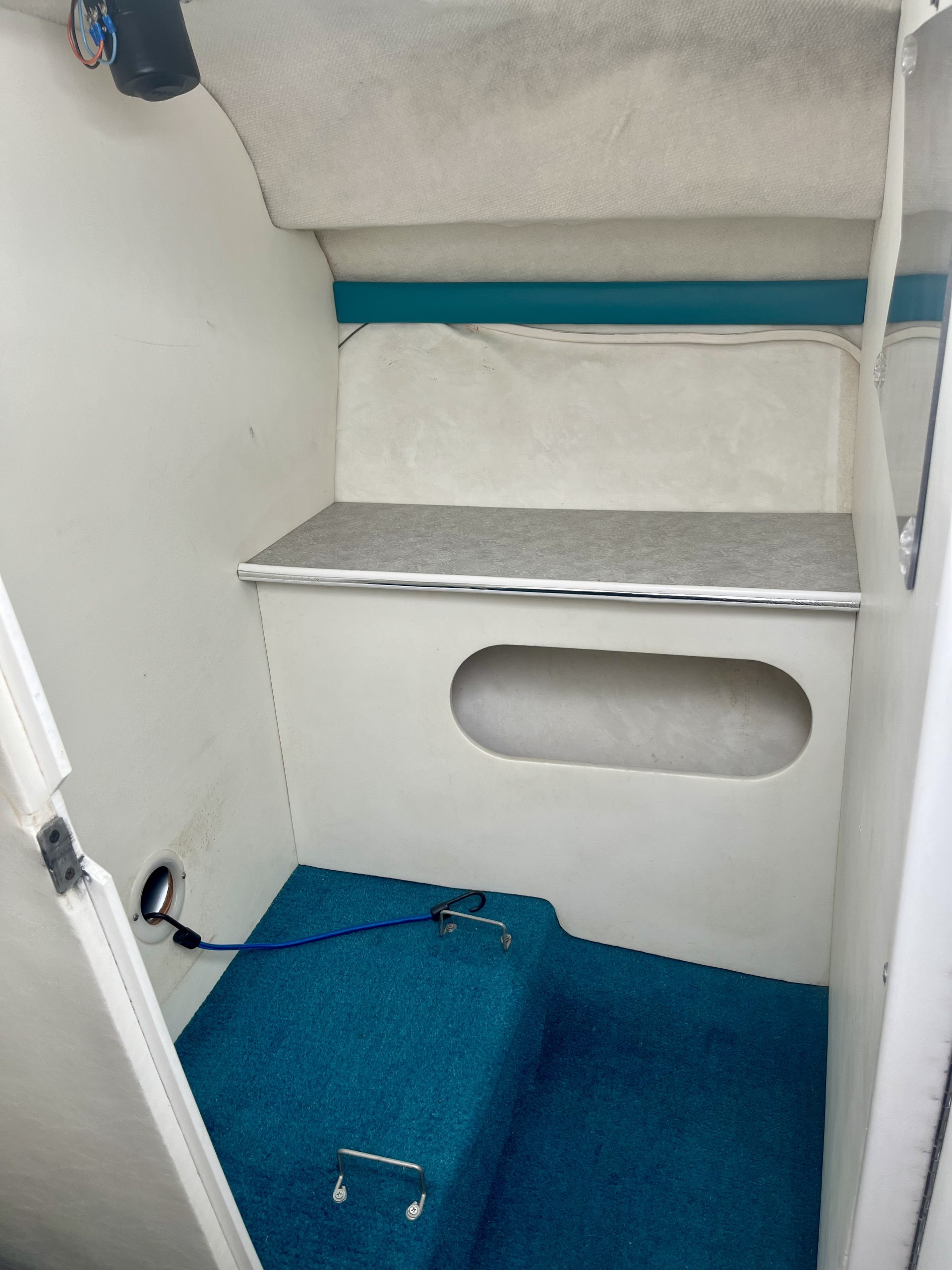 Features: cabin cuddy with all new paint and graphics, captain chair, back to back jump seats that fold down, rear seating with back bolsters that have been re-upholstered, all new snap in vinyl flooring, snap on cover, full camper top, pulpit, front bow anchor, swim ladder, ski tow, depth finder, new stereo with Bluetooth, subwoofer and amplifier, cabin with new upholstery, tv, closet, 4 port holes, bow hatch, bed in cabin that turns into a table with seating, lots of storage, bathroom, 12V and 110V power, Volvo Penta 7.4 liter big block motor with 660 hours, dual stainless steel props, trim tabs, 2 batteries, 2020 Shorelandr SL55TCBB tandem axle roller trailer with brakes, swing tongue, mounted spare tire, very low miles on trailer, registration good through 2026 on boat and trailer.
